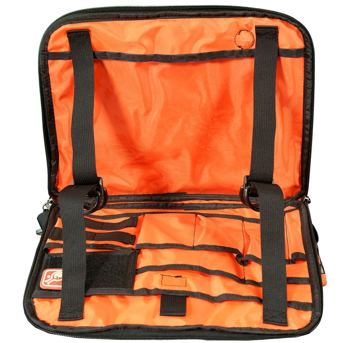 loops and transparent window for maps/documents - Front 4×6 MOLLE attachment straps with hook-and-loop for patches
