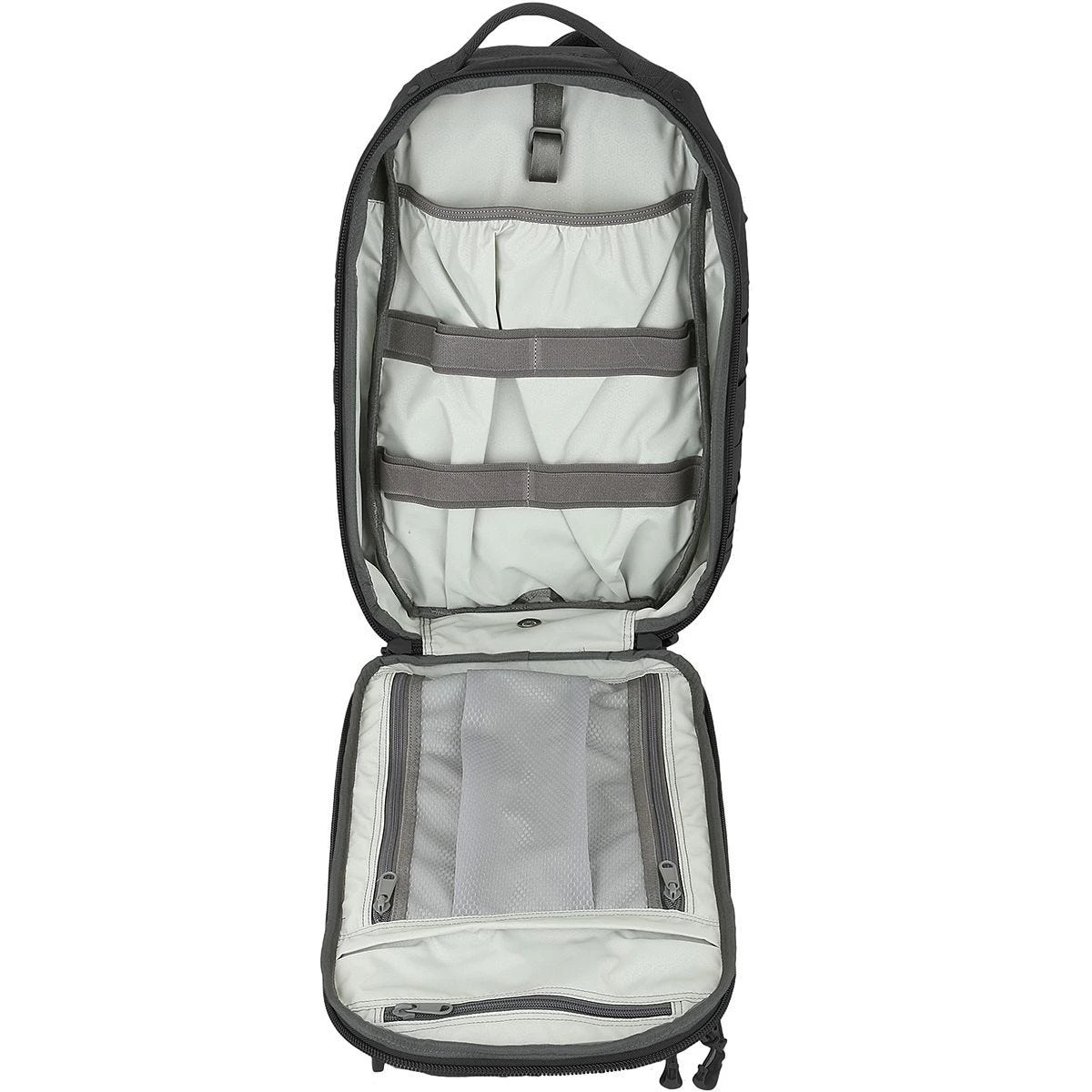 The backpack’s lockable main compartment, which has a full clamshell