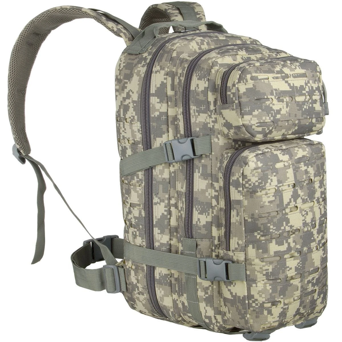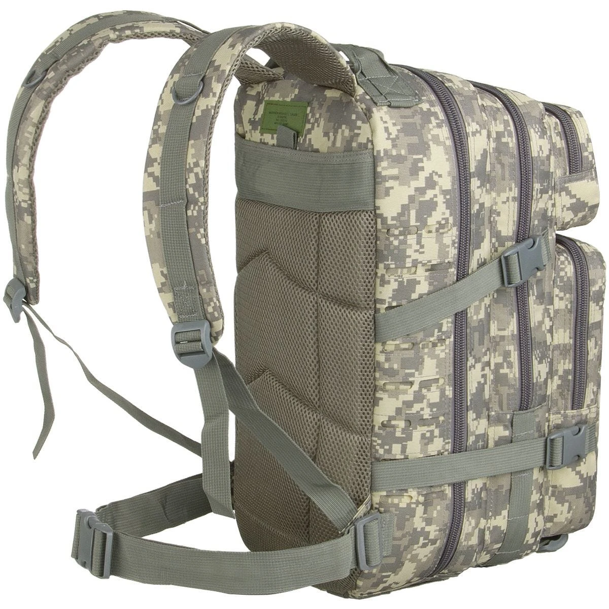 handle, two-way zippers, various MOLLE attachment points, and loops and