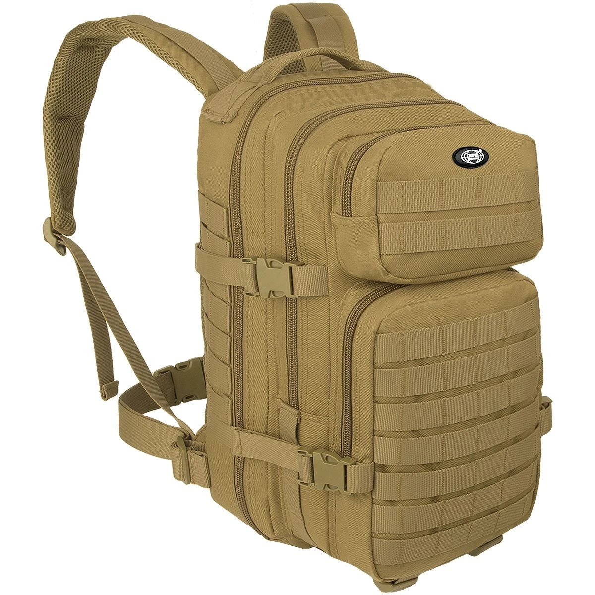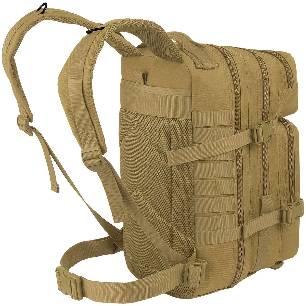polyester MOLLE straps all-round, and loops and D-rings on shoulder