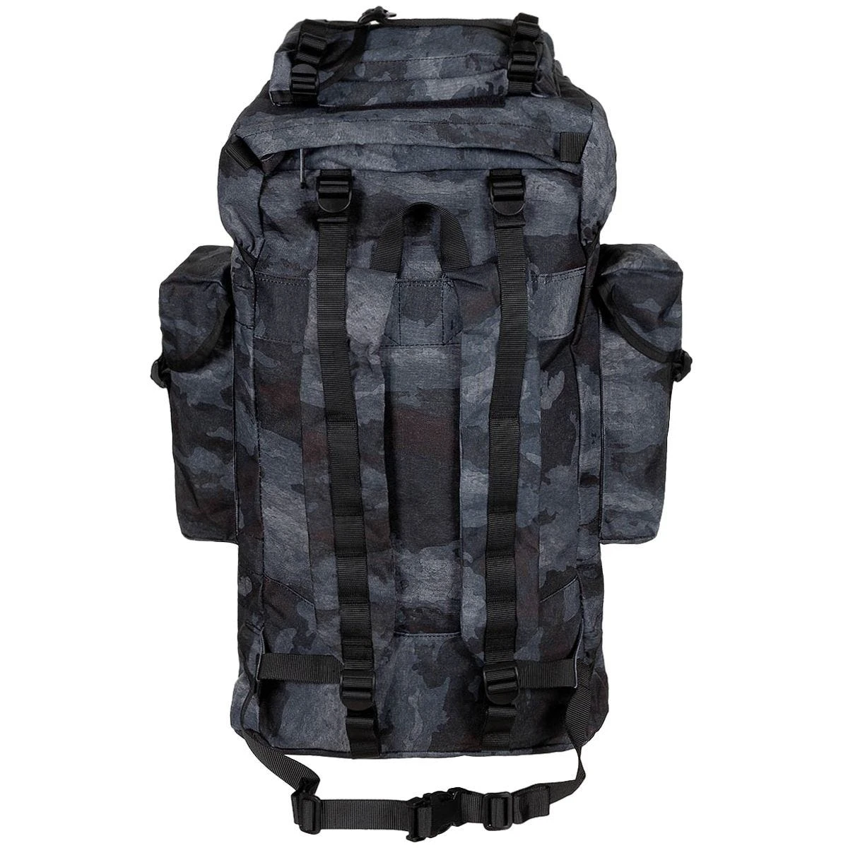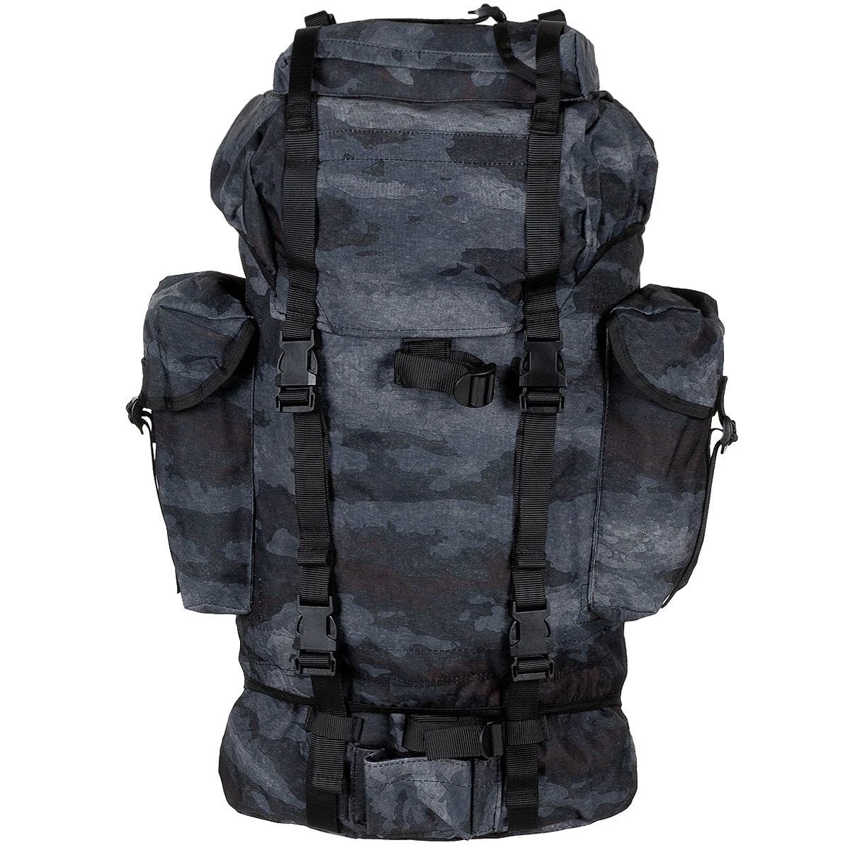 This heavy duty water-resistant 65 liters rucksack features 8 separate
