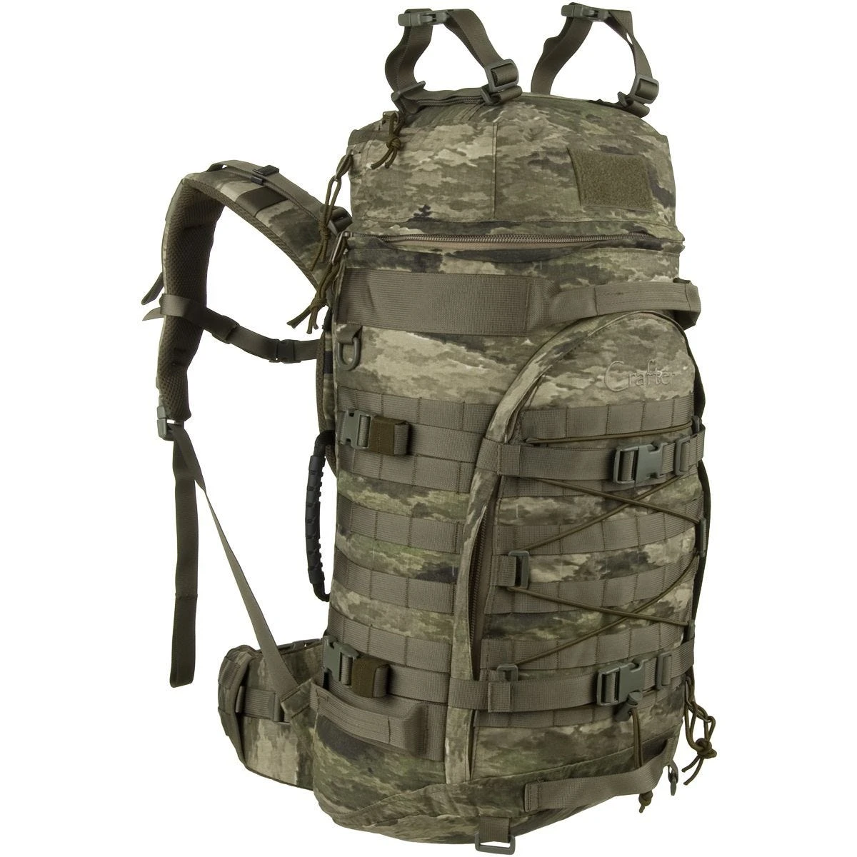 - PALS webbing straps for additional MOLLE attachments (med kit, knife